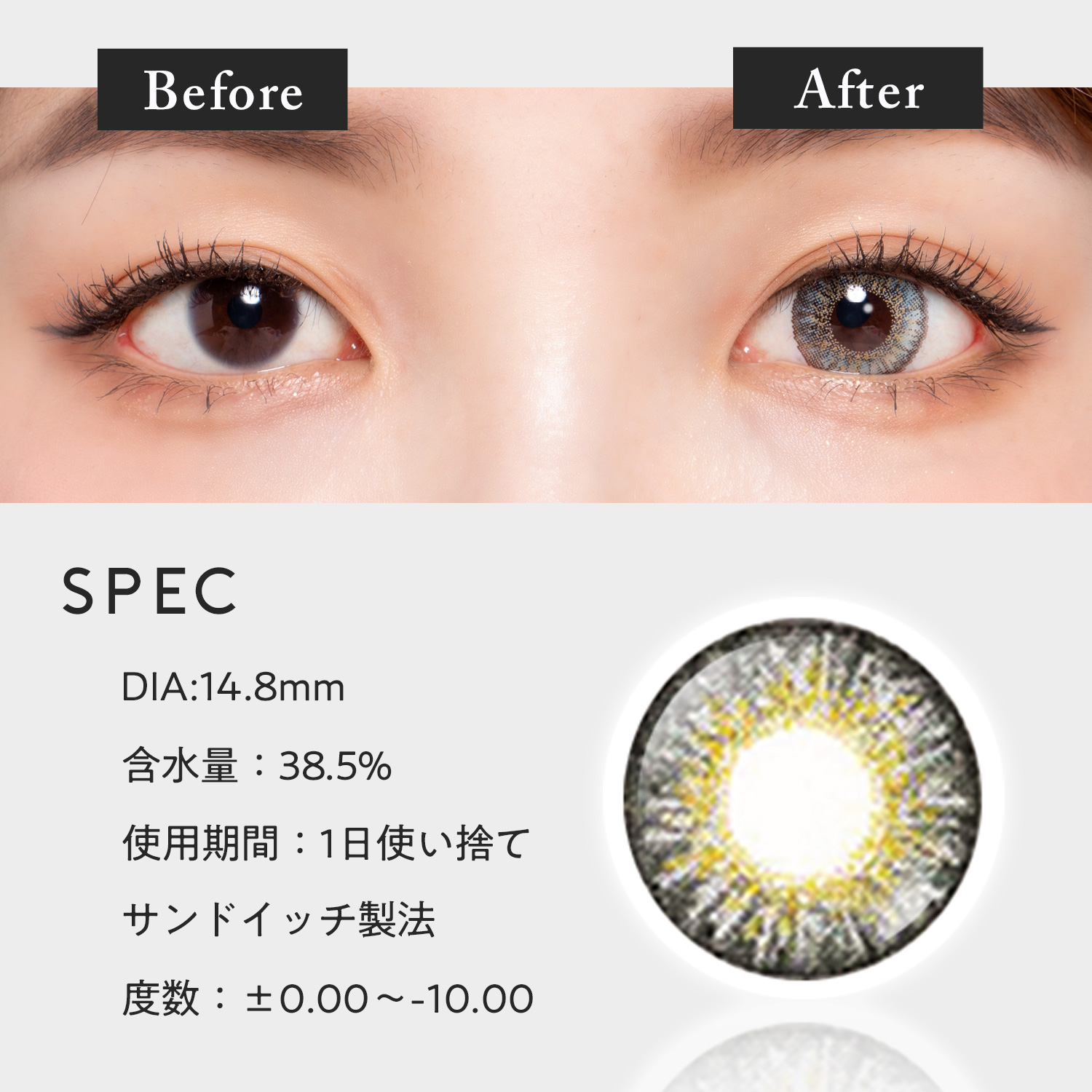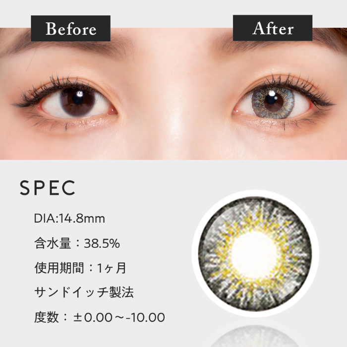 高発色のグレーカラーは、なんだか敷居が高くて試すのもためらいがちだけど、ローズベリーVIVIDのレンズデザインはとっても瞳馴染むデザインから心配ご無用!お客様のレビュー